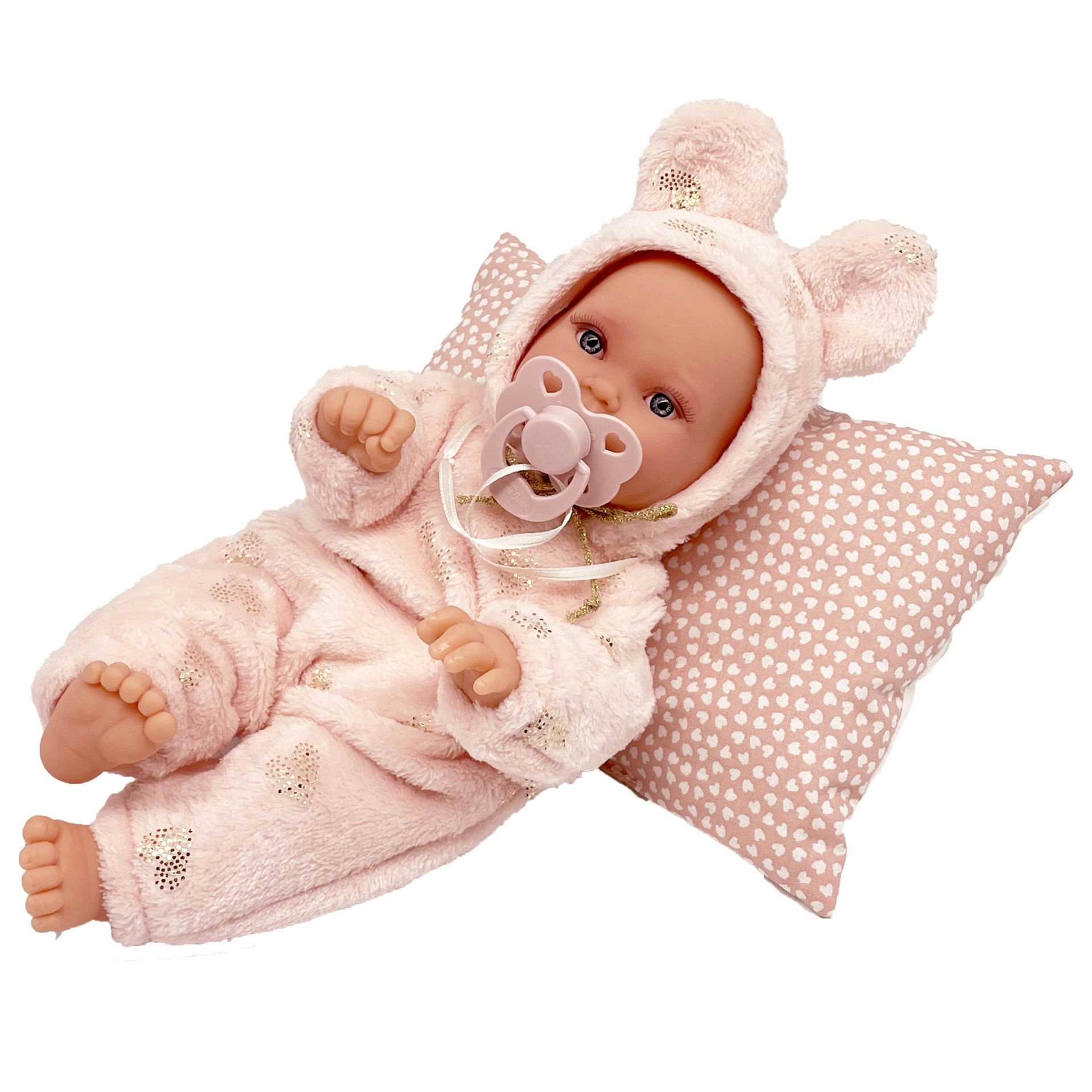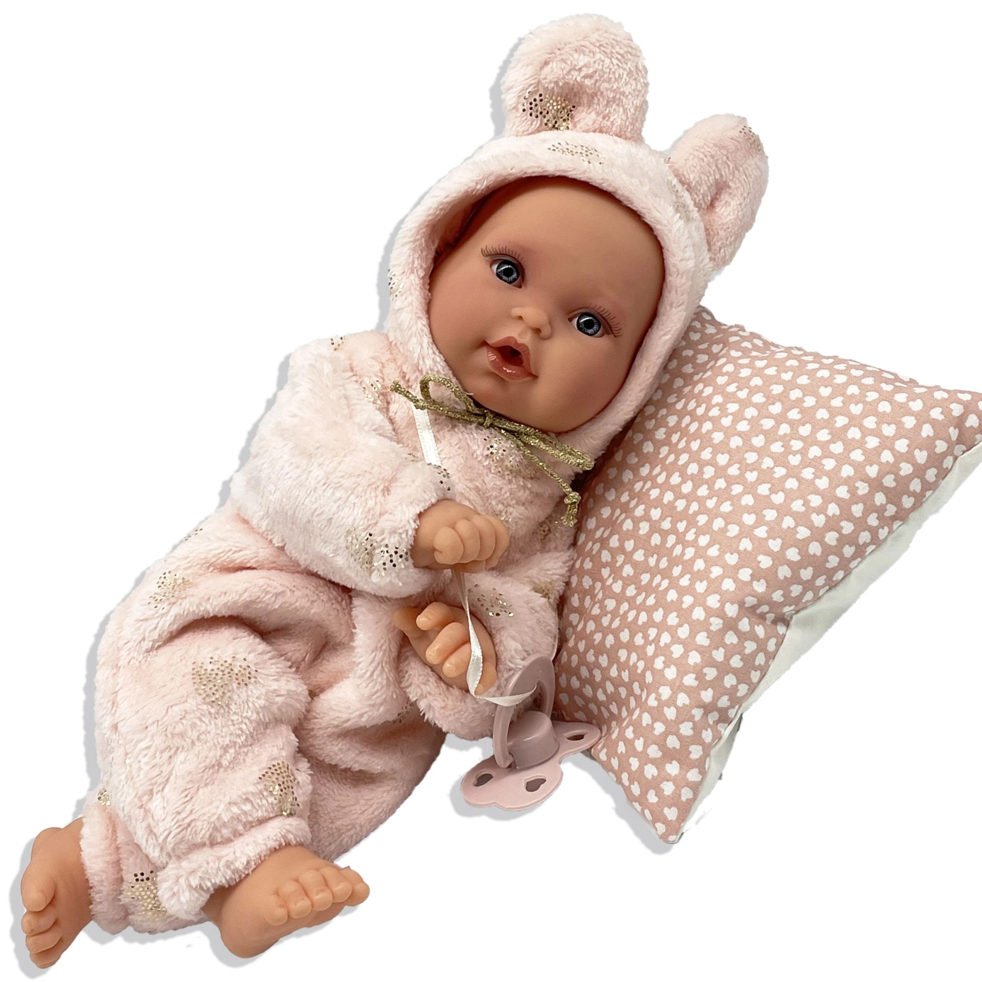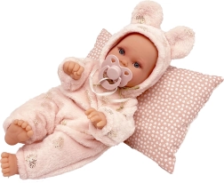 Mīkstais tekstila ķermenis un patīkamie audumi nodrošina komfortu gan spēlējoties, gan iemiegot. Izvēlētie apģērbi ir no organiskās kokvilnas bez ķīmiskas apstrādes.