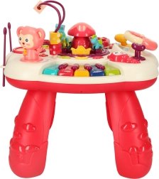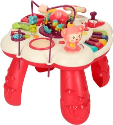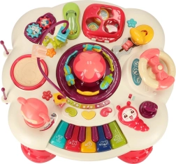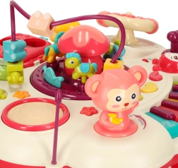Atklājiet rotaļīgu mācīšanos ar šo interaktīvo bērnu galdiņu maigi rozā krāsā. Tas piedāvā klavierītes ar skaņām un stāstiņiem angļu valodā, bungas ar vālītēm, karuselīti, stūri ar tauri un arī formu šķirotāju. Veicina sīko motoriku, acu–roku koordināciju un sensoro attīstību, nodrošinot ilgstošu aizraujošu nodarbi.
