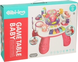 Interaktīvais izglītojošais galdiņš Bibi-inn ir neliels mājas izklaides centrs, kas apvieno mūziku, gaismas un mehāniskos stimulus. Bērns var atskaņot īsus stāstiņus, dziesmiņas un jautras frāzes angļu valodā, spaidīt krāsainās taustiņu pogas, griezt elementus un pētīt formas. Dažādās aktivitātes dabiski attīsta radošumu, dzirdi un iztēli.