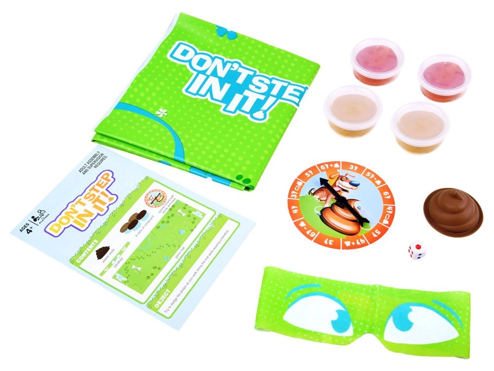 Izklājiet paklājiņu, izveidojiet “šķēršļus” no iekļautās plastilīna masas un uzsieniet acu apsēju. Spēlētāji iegriež griezni, kas nosaka soli skaitu un īpašas darbības. Jūsu mērķis ir veikt norādīto soļu skaitu un neuzkāpt uz neviena “pārsteiguma”.