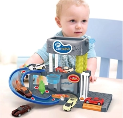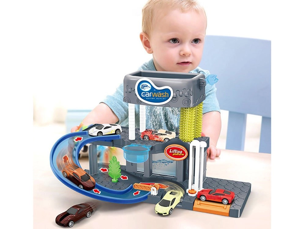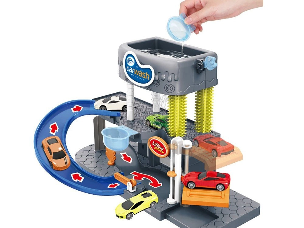 Šī divstāvu plastmasas automazgātava pārvērš jebkuru spēli reālistiskā piedzīvojumā. Bērni izbaudīs mašīnīšu mazgāšanu ar īstam tekošam ūdenim, pārvietošanu starp stāviem ar funkcionējošu liftu un iespaidīgu finālu ar gaismas un skaņas efektiem. Silikona birstes ir saudzīgas, taču pietiekami izturīgas atkārtotai spēlei.