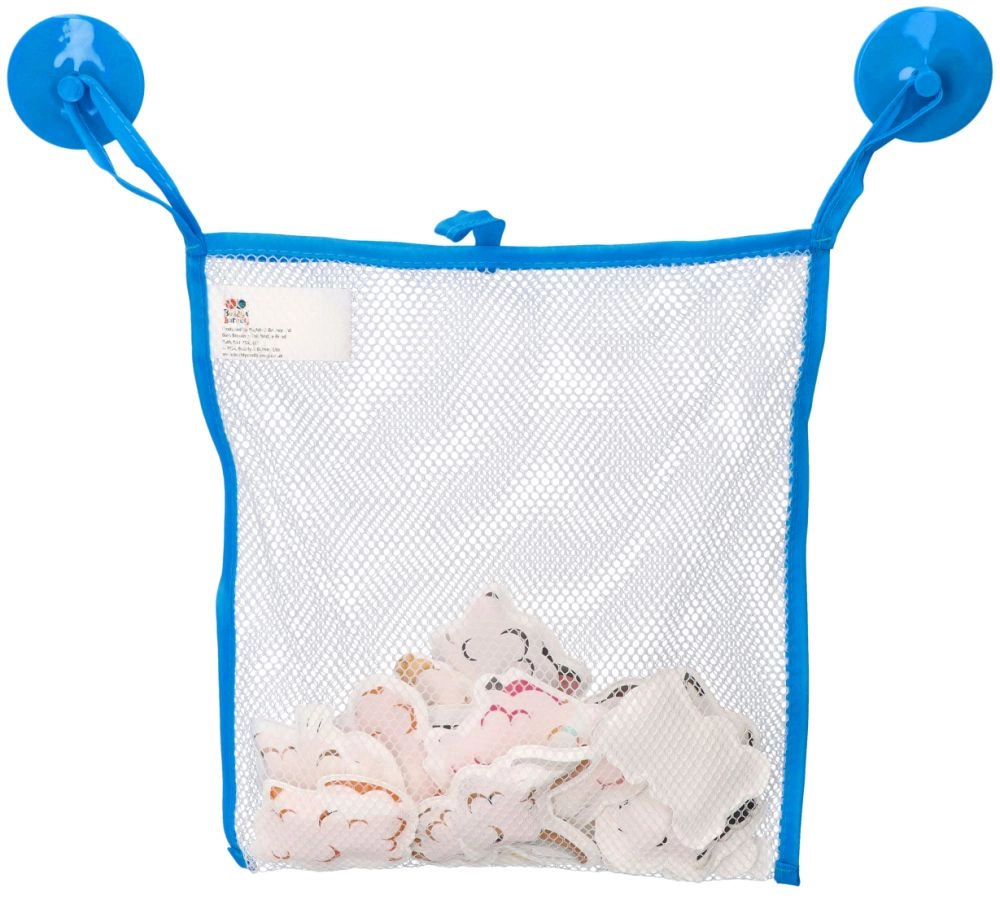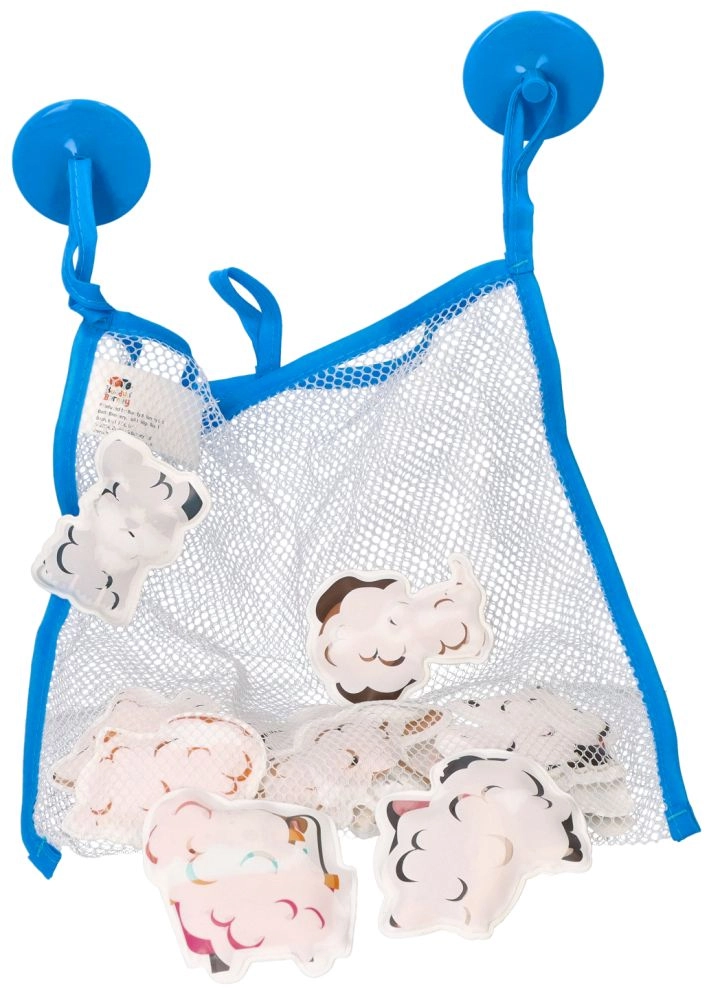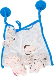 Komplekts papildināts ar ietilpīgu tīkliņu (23 × 27 cm) ar diviem piesūcekņiem piestiprināšanai pie gludas virsmas. Tīkliņš atvieglo rotaļlietu organizēšanu, ātru ūdens notecēšanu un higiēnisku žāvēšanu, lai vannas istaba paliktu kārtīga.