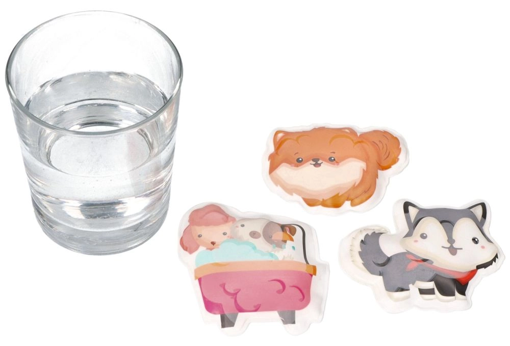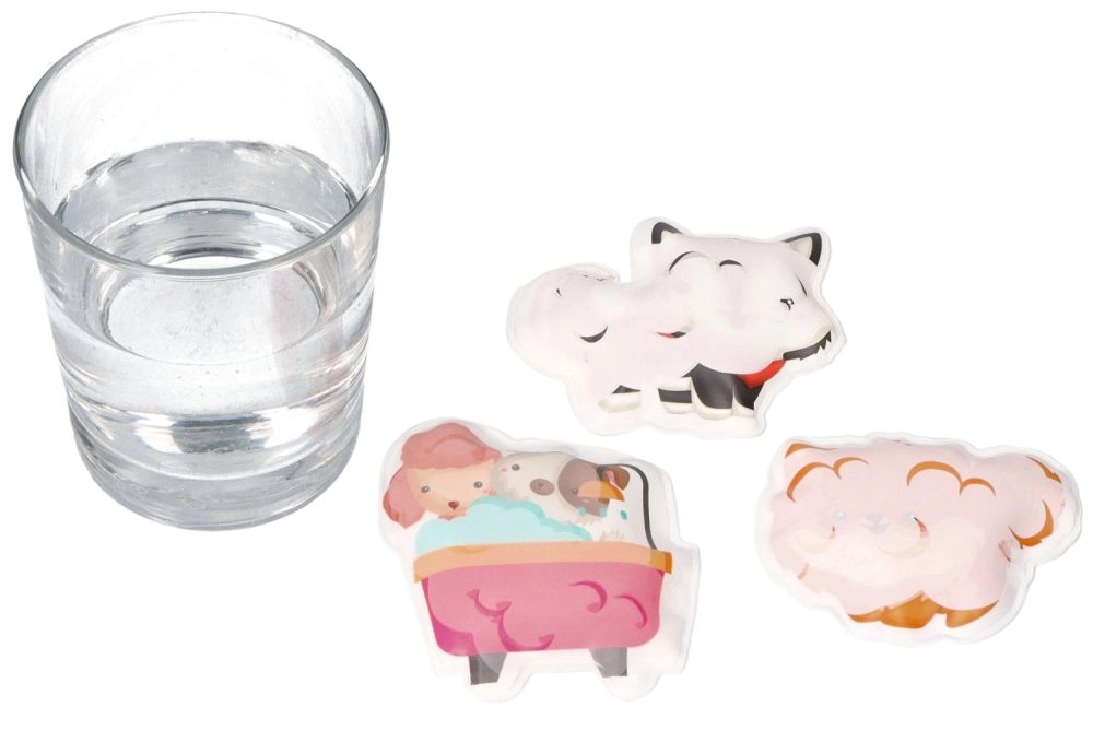 Atklājiet peldēšanās prieku ar mīlīgiem dzīvnieciņiem, kas pēc samirkšanas maina krāsu. Bērni var veidot savus stāstus, līmēt uzlīmes uz mitrām flīzēm un vienlaikus attīstīt sīko motoriku, krāsu un formu atpazīšanu.