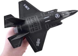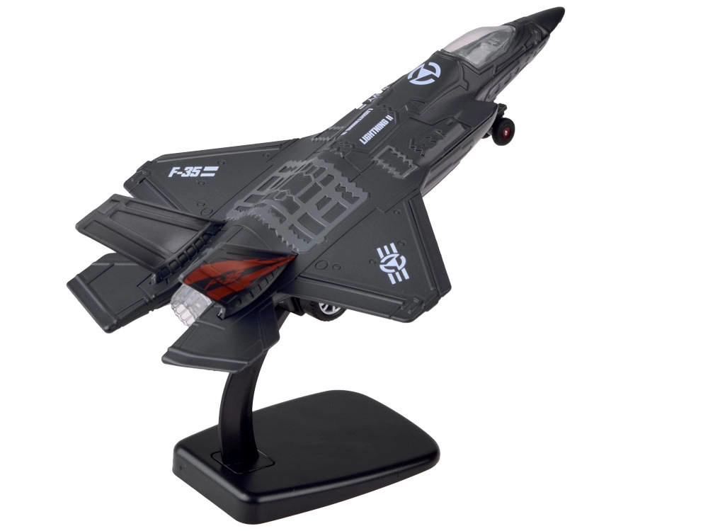 Atklājiet detalizētu metāla militārās lidmašīnas F-25 modeli, kas apvieno izturīgu izpildījumu ar pievilcīgām funkcijām bērniem no 3 gadu vecuma. Pēc atvilkšanas atpakaļ, pateicoties pull-back mehānismam, tas dodas uz priekšu. Nospiežot pret virsmu, aktivizējas motora un šaušanas skaņas un kabīnē iedegas LED apgaismojums, kas palielina spēles reālismu.