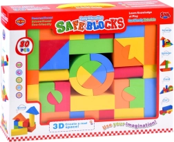 Spēlēšanās ar klucīšiem veicina formu un krāsu atpazīšanu, uzlabo koordināciju un sniedz lieliskas iespējas smalkās motorikas attīstībai. Pateicoties CE sertifikācijai, jums ir pārliecība, ka klucīši atbilst Eiropas drošības standartiem.