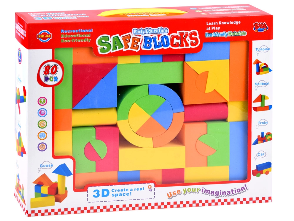 Ar krāsainajiem putu celtniecības klucīšiem bērni pavadīs stundām ilgu jautrību, veidojot daudzveidīgas konstrukcijas. Komplektā ietilpst 80 klucīši dažādās formās un krāsās, kas palīdz bērniem attīstīt iztēli un loģisko domāšanu. Šie klucīši ir izgatavoti no kvalitatīvām putām, ir droši un pietiekami izturīgi ilgstošai lietošanai.
