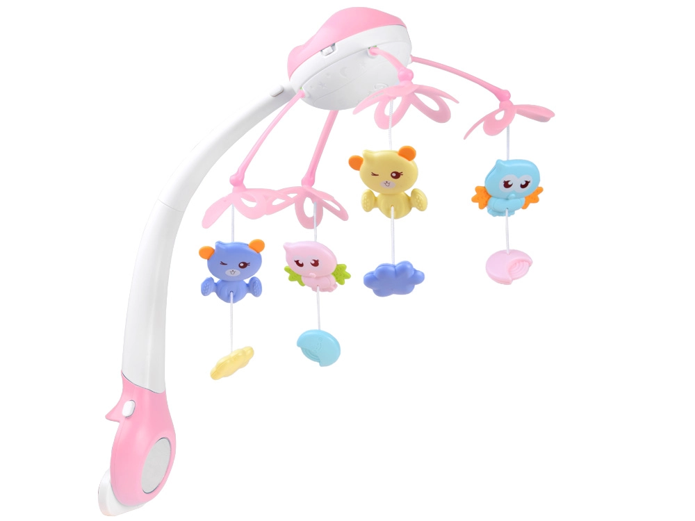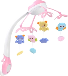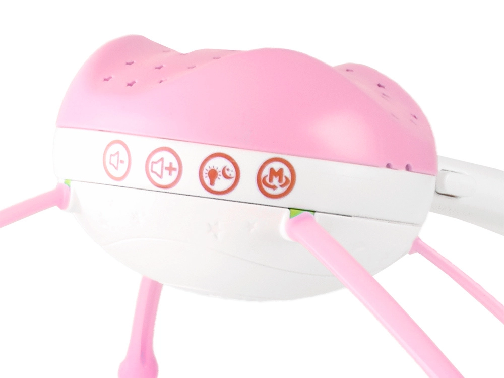 Mūzikas karuselis ar zvaigžņu projektoru un tālvadību gultiņai – Rozā
