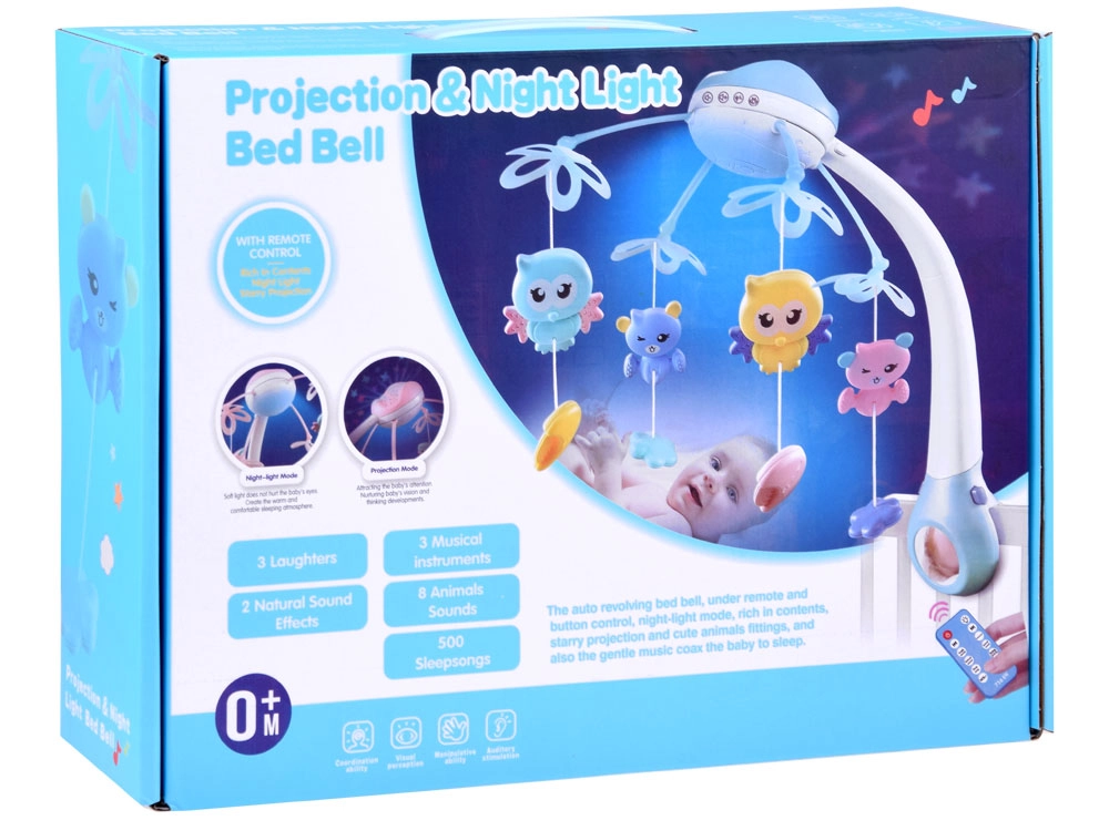 Karuselis virs gultiņas ar projektoru un tālvadību