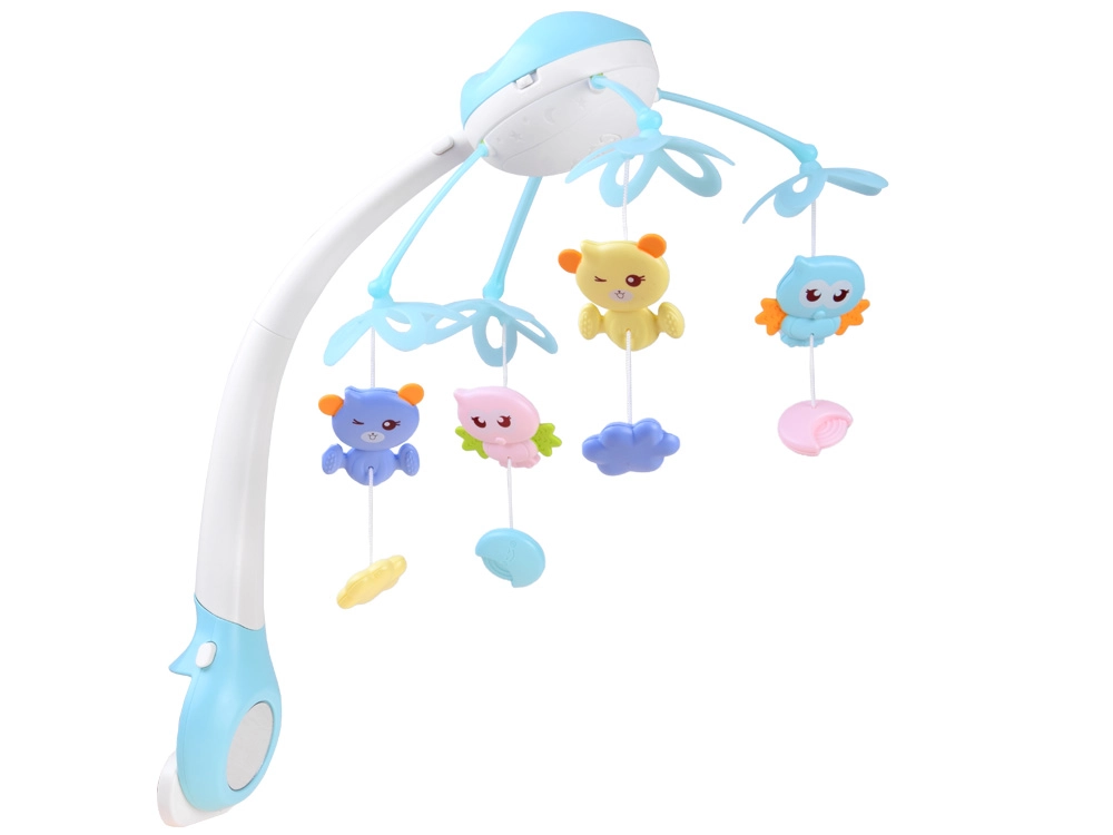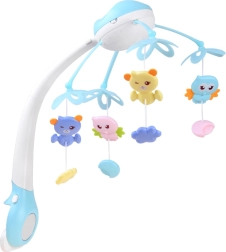 Stabila plastmasas konstrukcija ar drošu stiprinājumu ir viegli montējama un der lielākajai daļai bērnu gultiņu. Pasteļtoņu piekaramās figūriņas (mīlīgi dzīvnieciņi) vienmērīgi griežas un piesaista mazuļa uzmanību, tādējādi veicinot vizuālo koordināciju un koncentrēšanos.