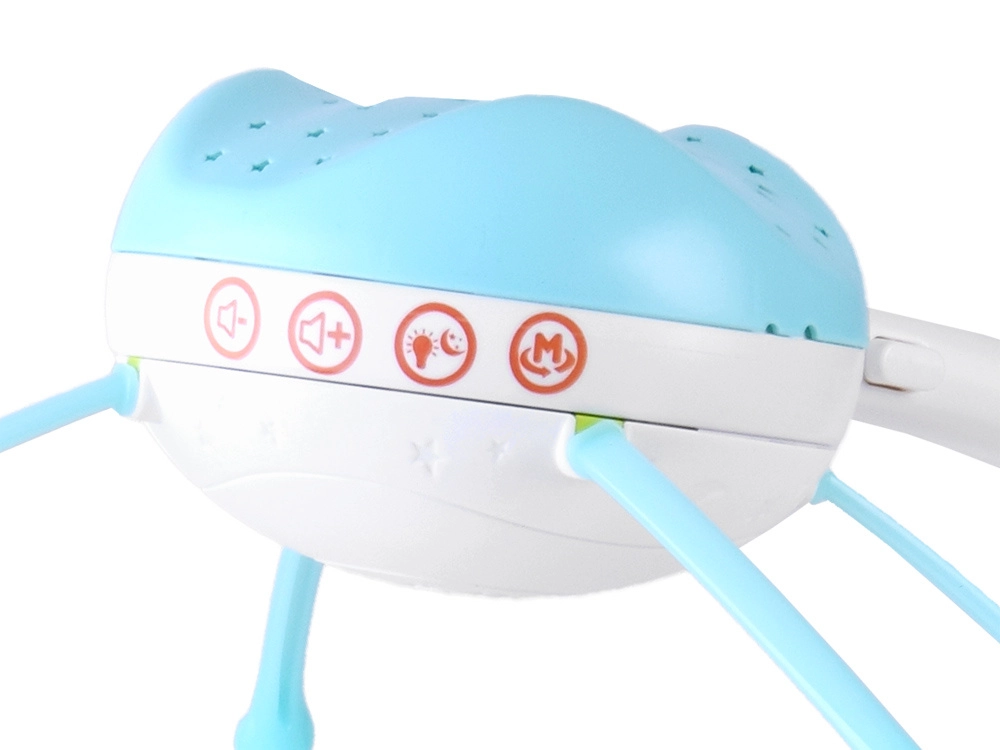 - Ieslēgšana/izslēgšana, gaisma, skaņdarbu pārslēgšana, bērna smiekli, melodijas, dabas un dzīvnieku skaņas, šūpuļdziesmas, taimeris, skaļuma regulēšana