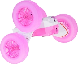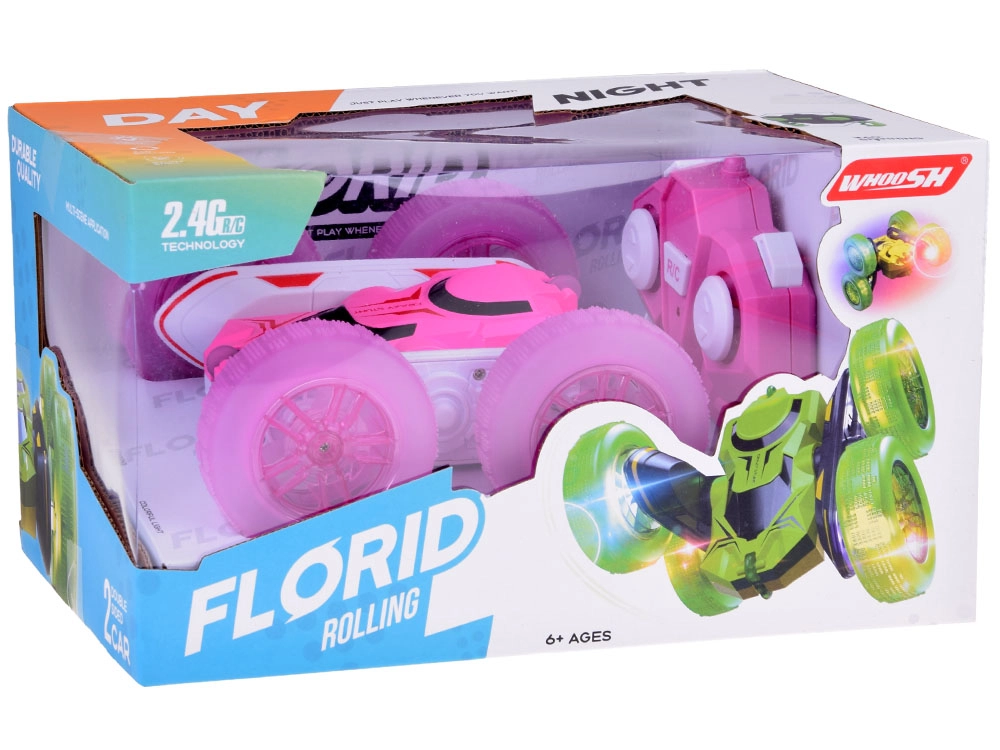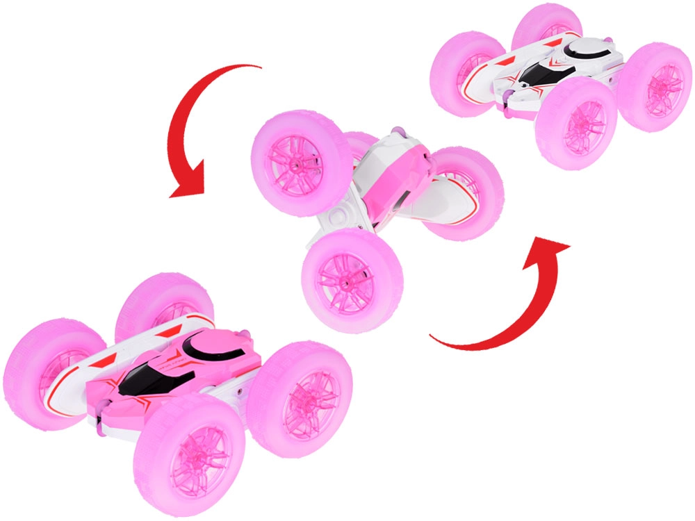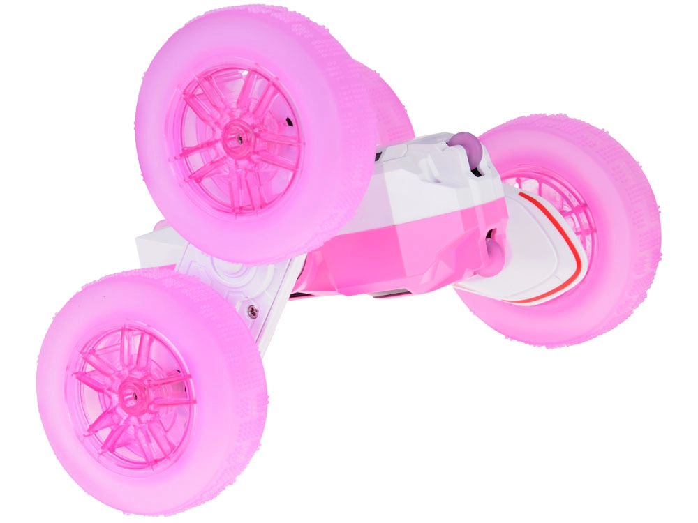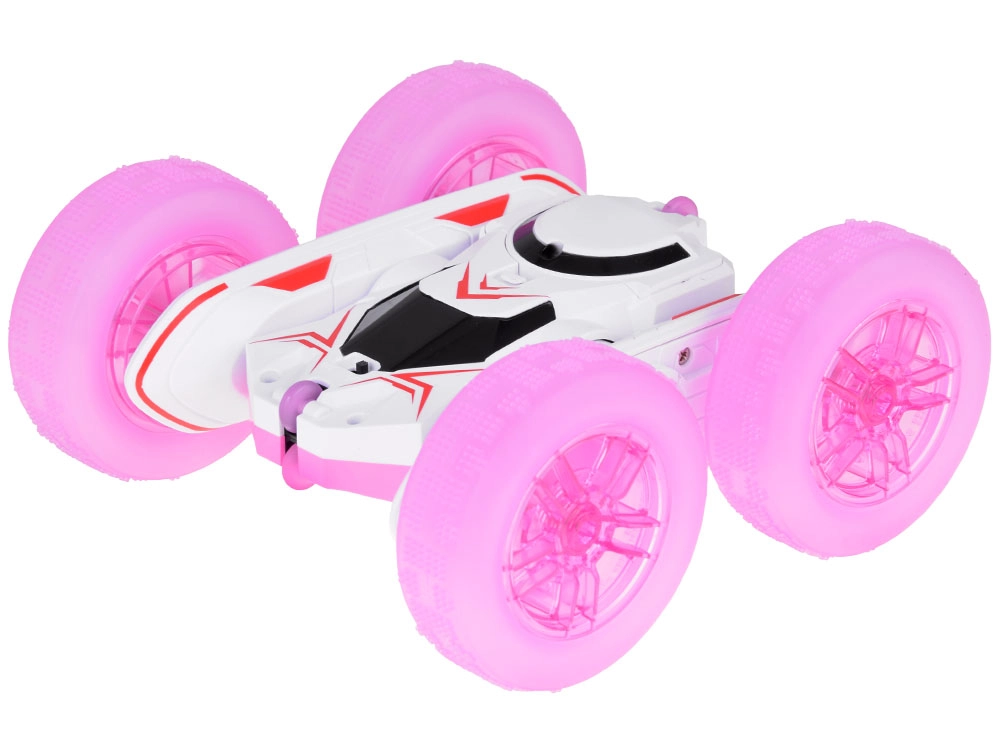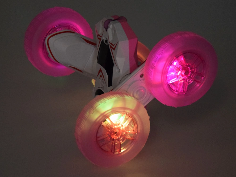 Meklējat izturīgu un efektīgu RC auto, kas aizraus gan bērnus, gan pieaugušos? Šis kaskadiera modelis veic pilnu 360° apgriezienu un, pateicoties divpusējai konstrukcijai, turpina braukt arī pēc apgāšanās. Lielie, saķerīgi riteņi un robustā uzbūve tiek galā ar nelīdzenu segumu, bet spīdošie riteņi nodrošina lielisku skatu krēslā un tumsā.