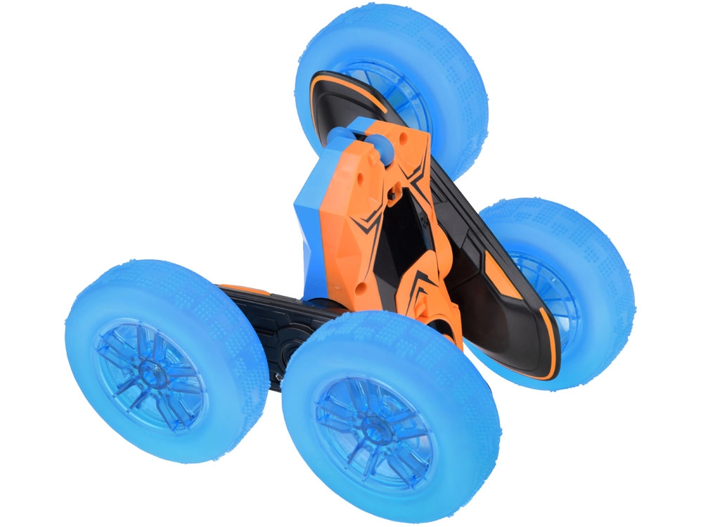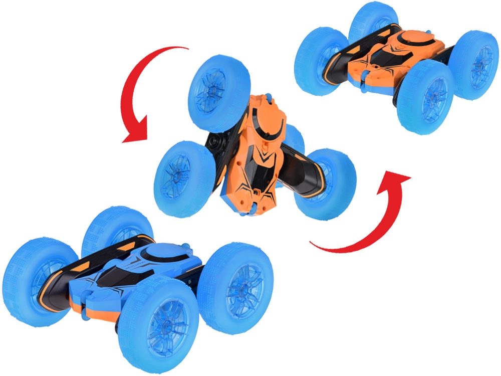 Atklāj auto, kas veic pilnus 360° apgriezienus! Pateicoties inovatīvajai konstrukcijai, tas spēj turpināt braukt pat pēc apgāšanās uz otru pusi. Lielie gumijas riteņi nodrošina, ka auto tiek galā arī ar nelīdzenu reljefu, bet iespaidīgie apgaismotie riteņi padara to par unikālu izklaidi krēslā. Izbaudi apgriezienus, brauc uz priekšu un atpakaļ, pa labi vai pa kreisi – viss maksimālai jautrībai!