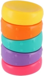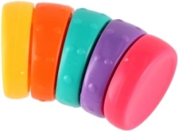 Iepazīstinām ar varavīksnes pretstresa riņķi – nelielu torni ar 5 izliekta profila krāsainiem riņķiem, kas perfekti ieklikšķ viens otrā. Katram riņķim ir dažādas faktūras un formas, kas palīdz attīstīt sīko motoriku un veicina radošumu.