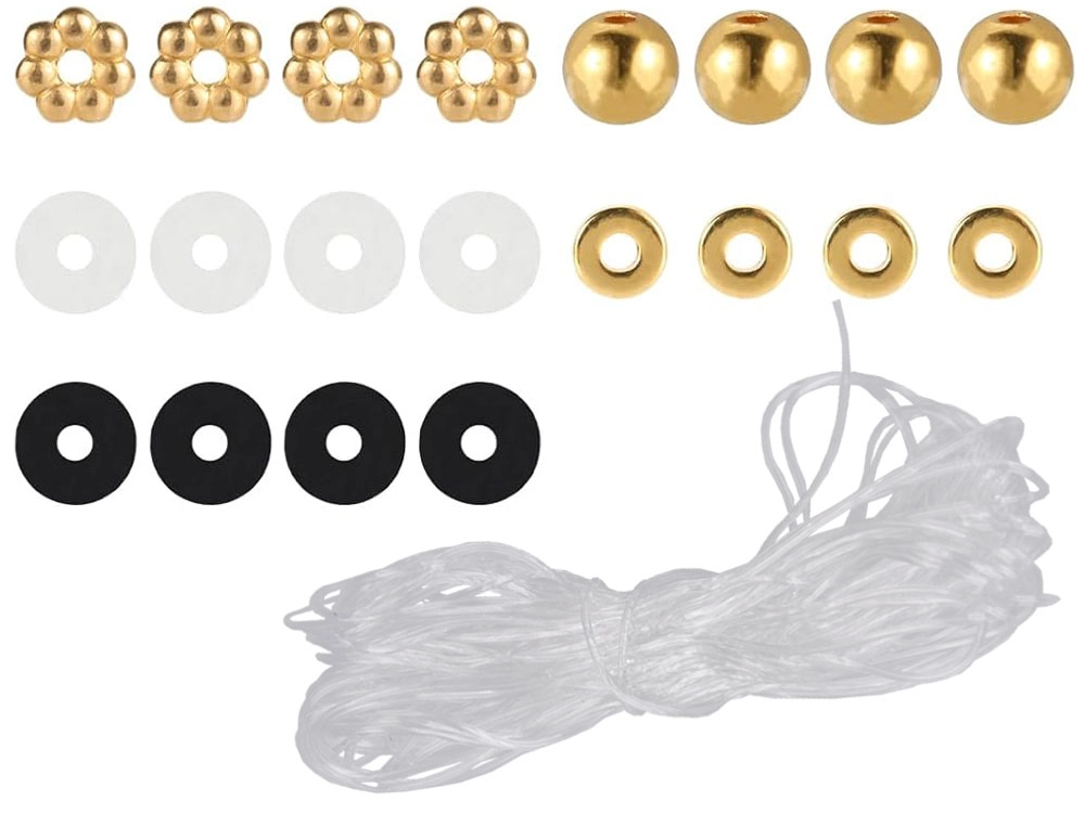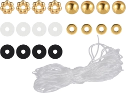 Komplekta komponentes var izmantot visdažādāko rotaslietu izgatavošanai, piemēram, aprocēm, kaklarotām vai auskariem. Zelta pērlītes piešķir dekoratīvu akcentu.