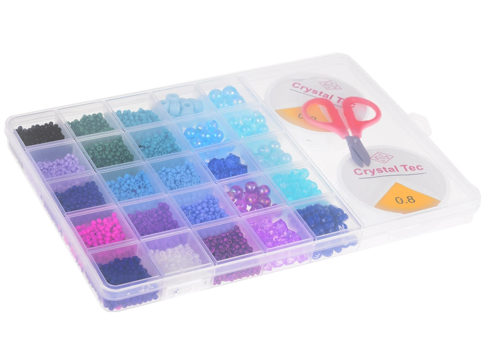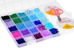 Komplekts iepakots praktiskā, caurspīdīgā koferītim līdzīgā kārbiņā ar nodalījumiem, kas neļauj krellītēm sajaukties. Komplektā iekļautas arī 2 spoles caurspīdīgas auklas un šķēres, lai jūs varētu uzreiz sākt veidot savas sapņu rotas.