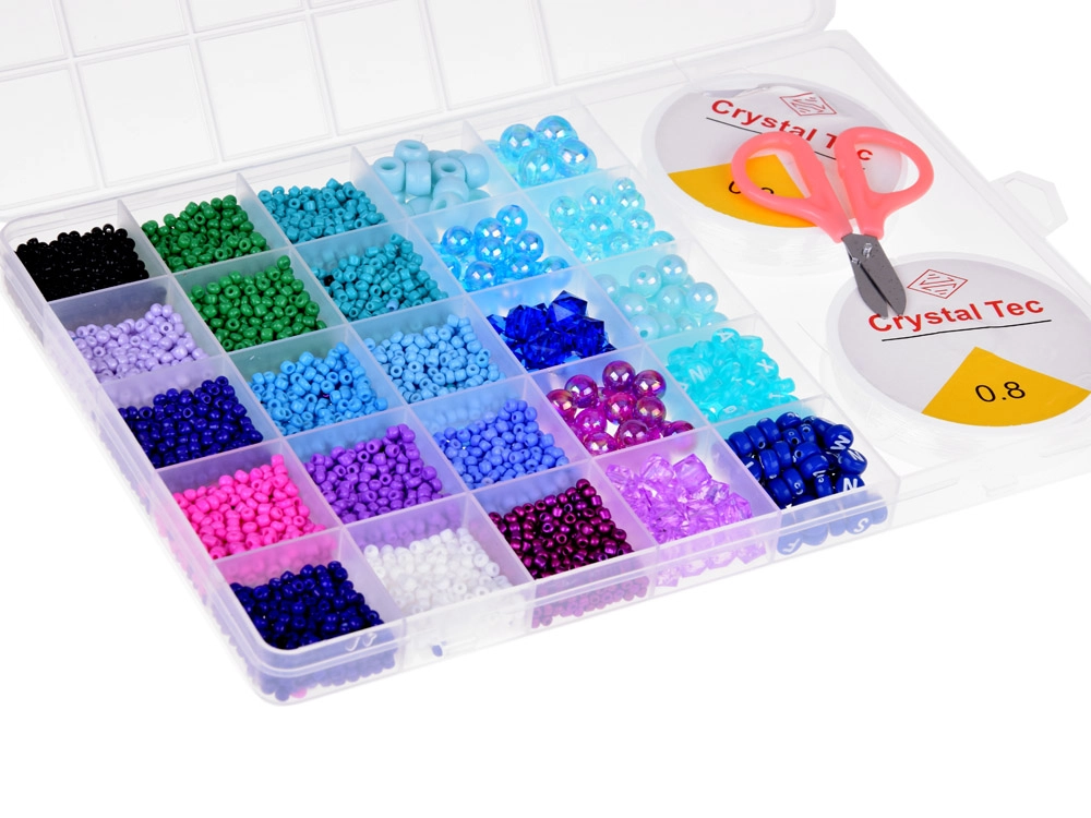 Attīstiet savu radošumu un roku veiklību, veidojot personiskus rotājumus no daudzveidīgām krellīšu krāsām un formām.