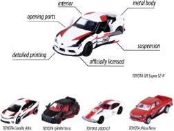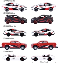 Šis dāvanu komplekts iepriecinās ikvienu autosporta un TOYOTA zīmola cienītāju. Iepakojumā atradīsiet piecus leģendārus modeļus – GR Supra, GRMN Yaris, Hilux Revo, Corolla Altis un 2000 GT – vienotā sacīkšu stilā. Metāla virsbūves, detalizēti apdruku elementi un funkcionālas atveramās daļas piešķir automobiļiem realistisku izskatu.