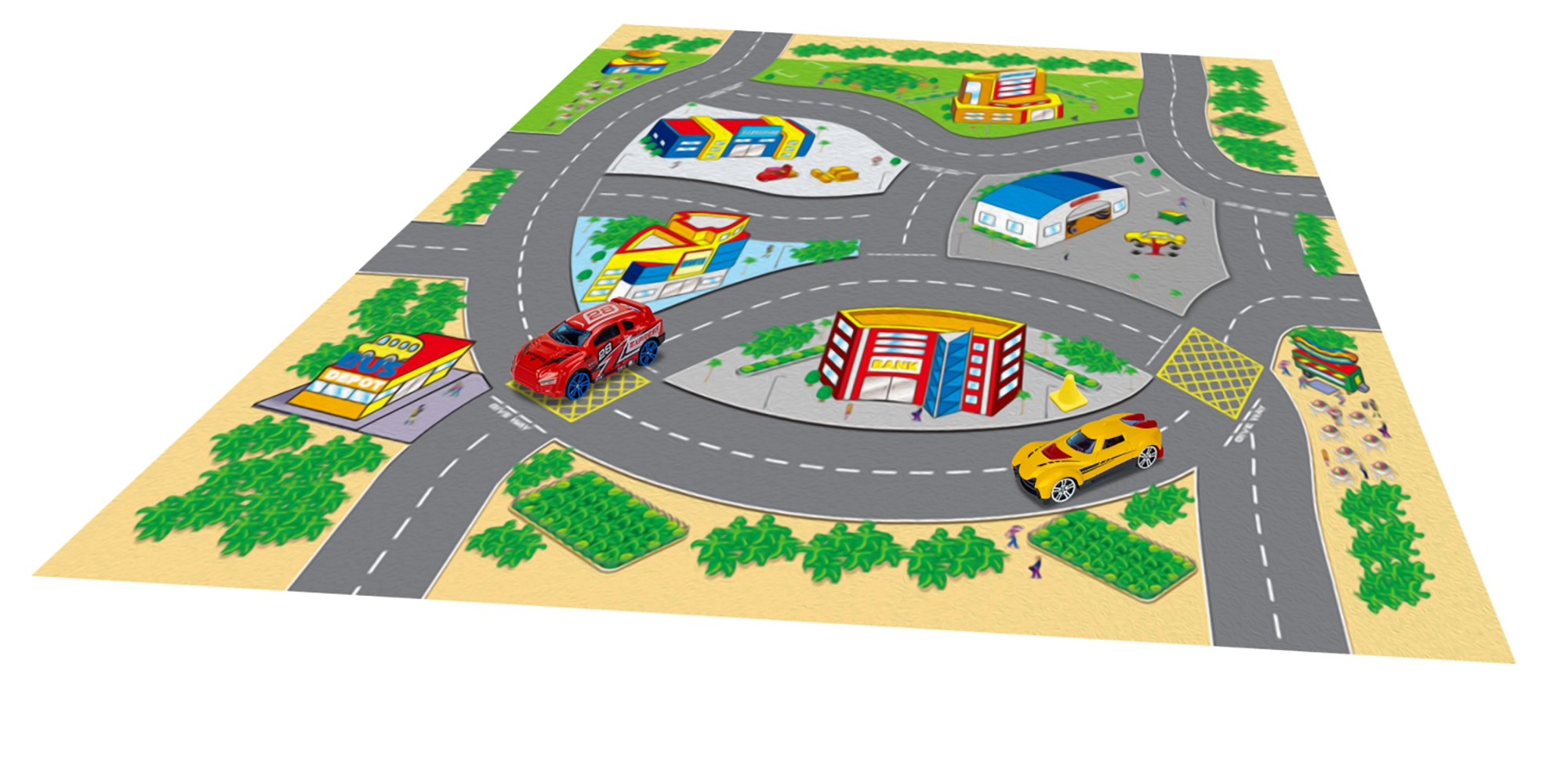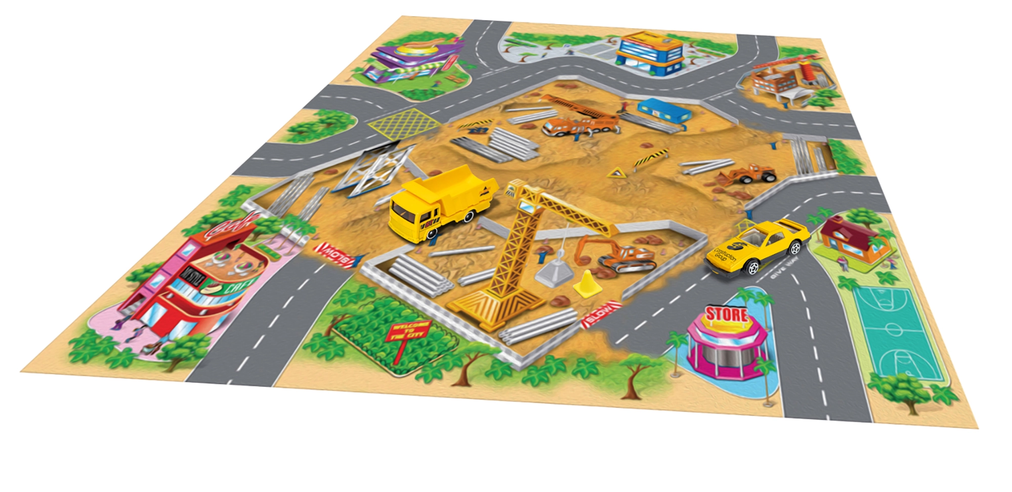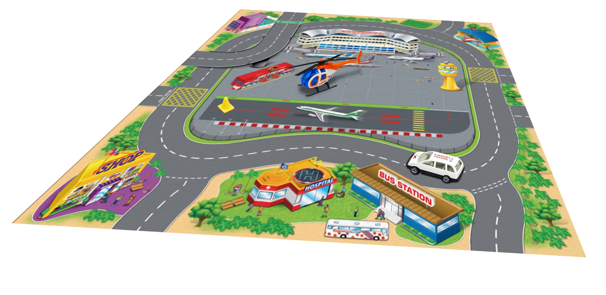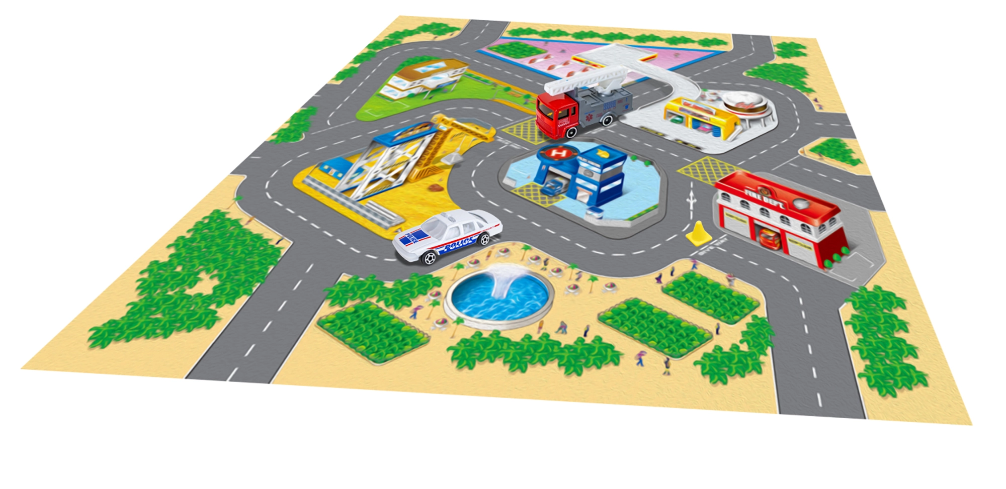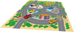Šī spēļu karte bērniem piedāvā daudzveidīgu stāstu un piedzīvojumu pasauli. Tekstila materiāls ir patīkams taustei, to ir viegli salocīt un uzglabāt, savukārt metāla transportlīdzekļi izceļas ar izturību un reālistisku izpildījumu. Pateicoties kompaktajiem izmēriem, komplekts ir ideāls mājām, bērnudārzam un izbraucieniem.