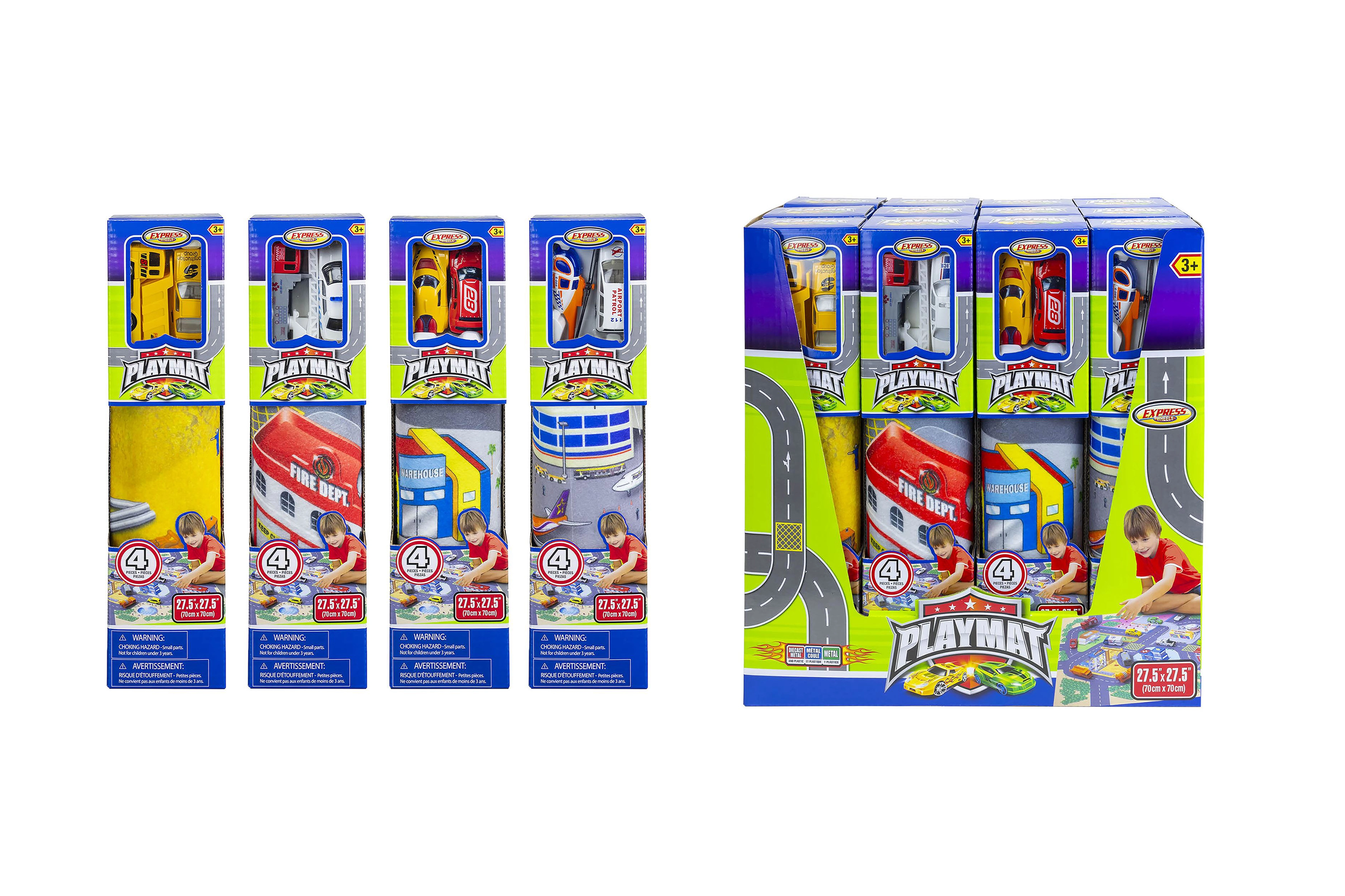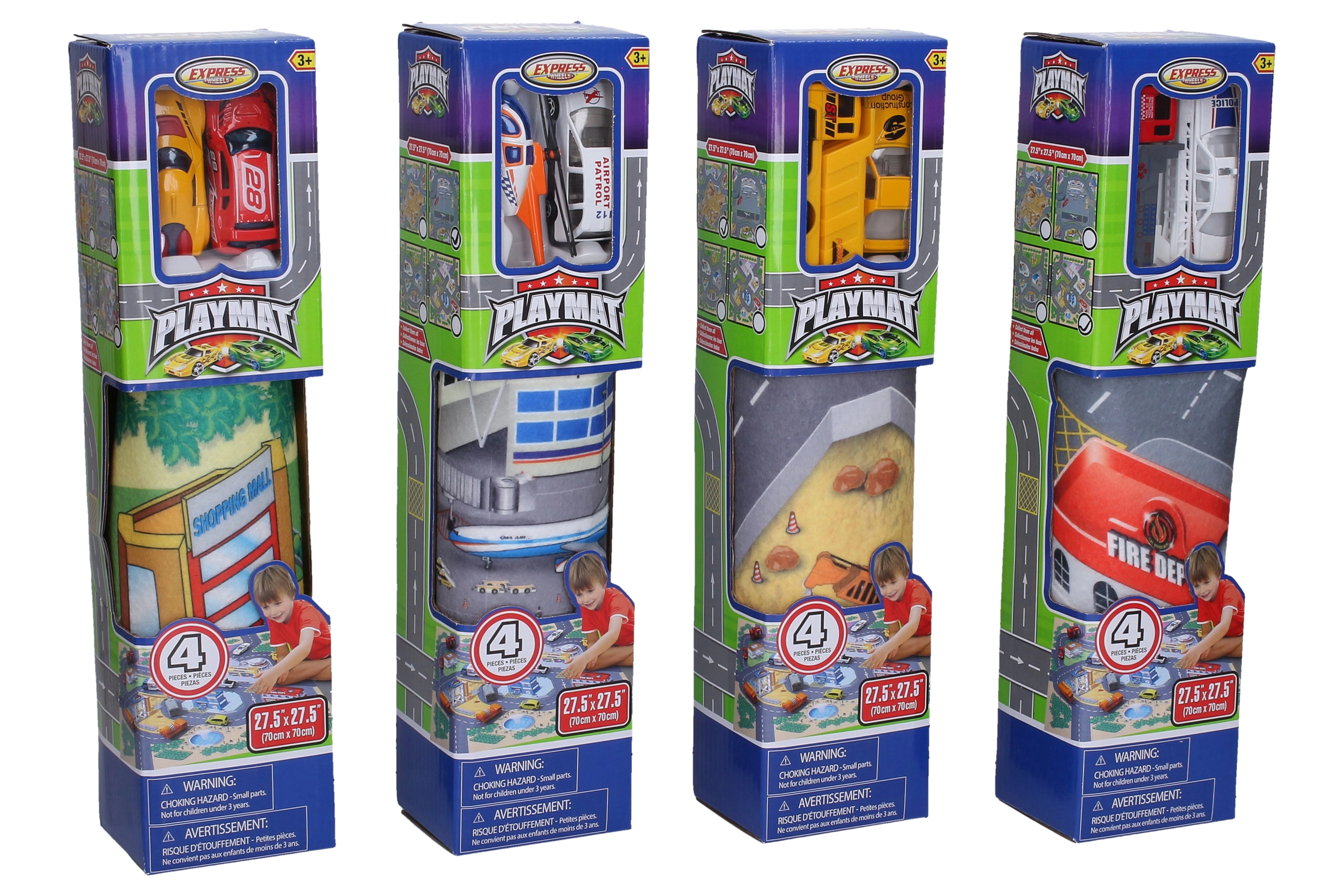 Izvēlieties no 4 dažādiem motīviem, kas veicina radošu spēli un satiksmes situāciju apguvi: glābšanas dienesti, lidosta, būvlaukums un sacīkšu trase. Katrā iepakojumā ir 2 metāla transportlīdzekļi, kas lieliski sader ar izvēlēto karti.