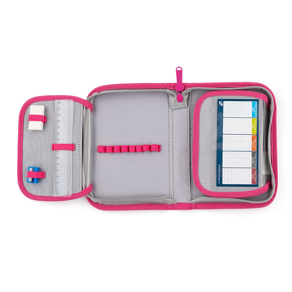 Pārdomāts iedalījums piedāvā pietiekami daudz vietas mācību grāmatām, kladēm un uzkodām. Iekšējais šķirotājs, vairākas kabatas un rāvējslēdzēja nodalījumi palīdz uzturēt kārtību visas skolas dienas garumā. Komplektā iekļauts arī praktisks sporta maisiņš ar savelkamām auklām un vienstāva penālis ar divām atlokām un gumijas cilpiņām.