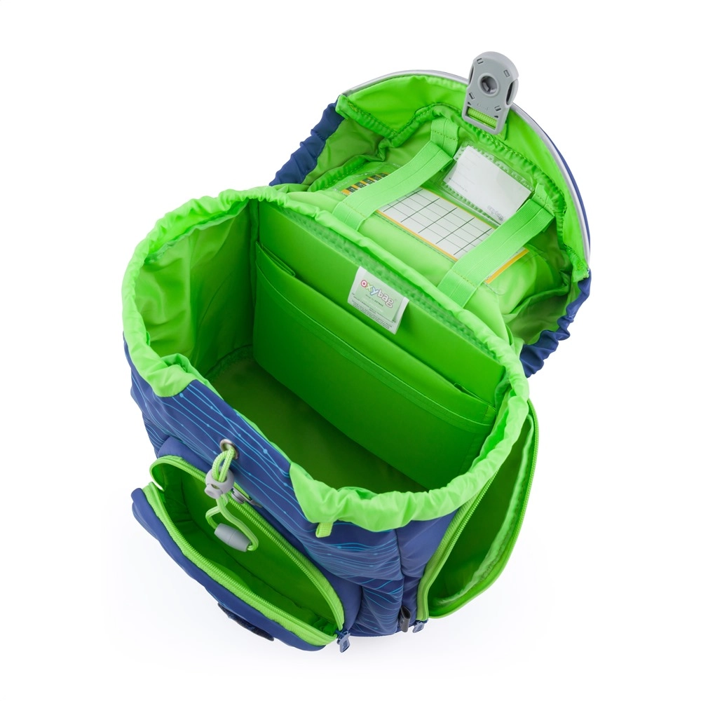 Komplekts OXY Sherpy Blue ir uzticama izvēle bērniem no 1. līdz 3. klasei. Galvenais nodalījums ar savilkšanas auklu un magnētisko aizdari ļauj viegli atvērt ar vienu roku, iekšējais šķirotājs uztur kārtību mācību grāmatām un burtnīcām. Priekšējā kabata uzkodām un sānu kabatas ar rāvējslēdzi nodrošina papildu pārskatāmu glabāšanu.