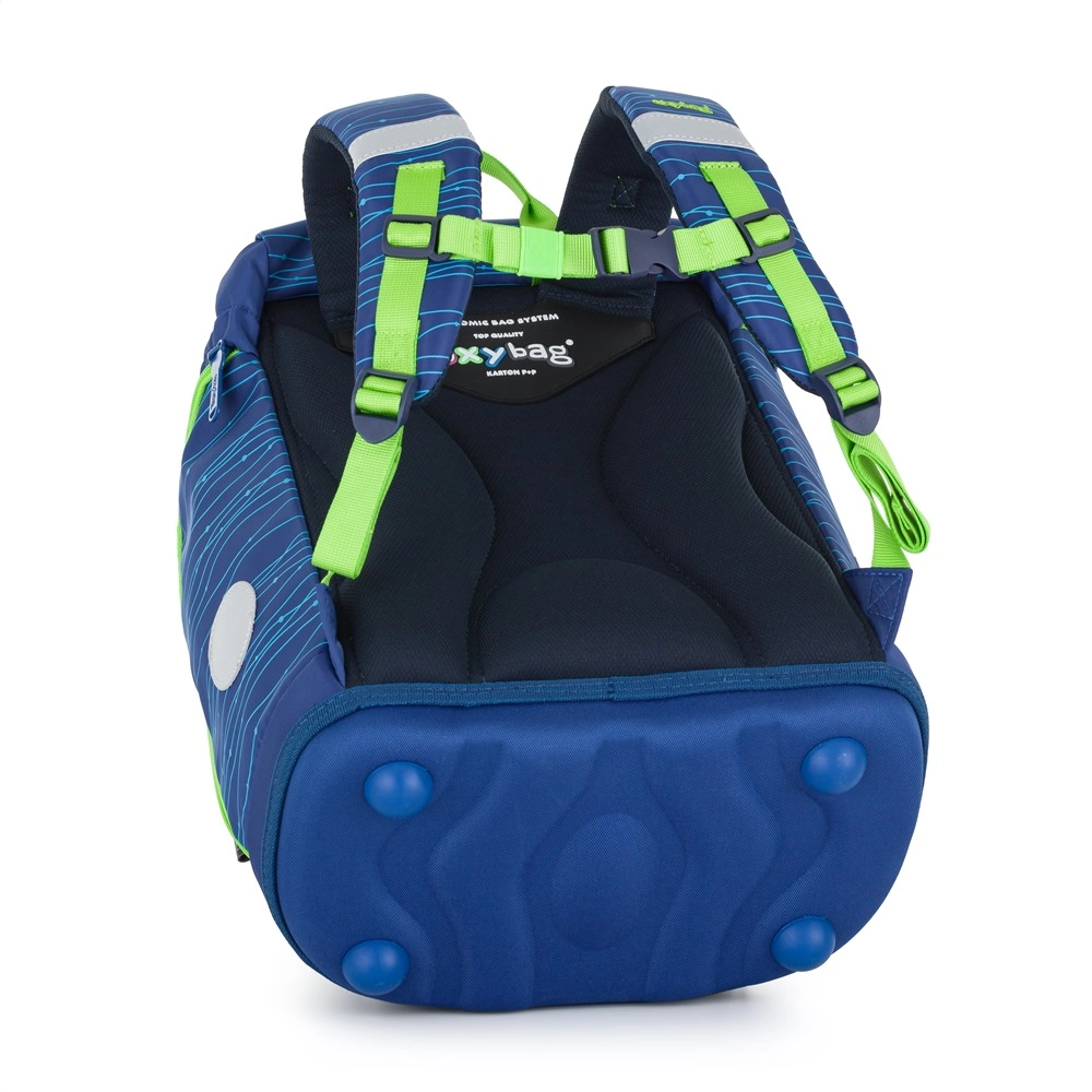 Ergonomika pirmajā vietā: anatomiski veidots muguras panelis (garums 33 cm), polsterētas plecu lences un regulējama krūšu josta atbalsta pareizu stāju. Stingra pamatne ar plastmasas kājiņām novērš apgāšanos, atstarojošie elementi palielina drošību ceļā uz skolu un mājup. Pateicoties maināmām nozīmītēm ar lipekļstiprinājumu, bērni var viegli personalizēt somas izskatu.