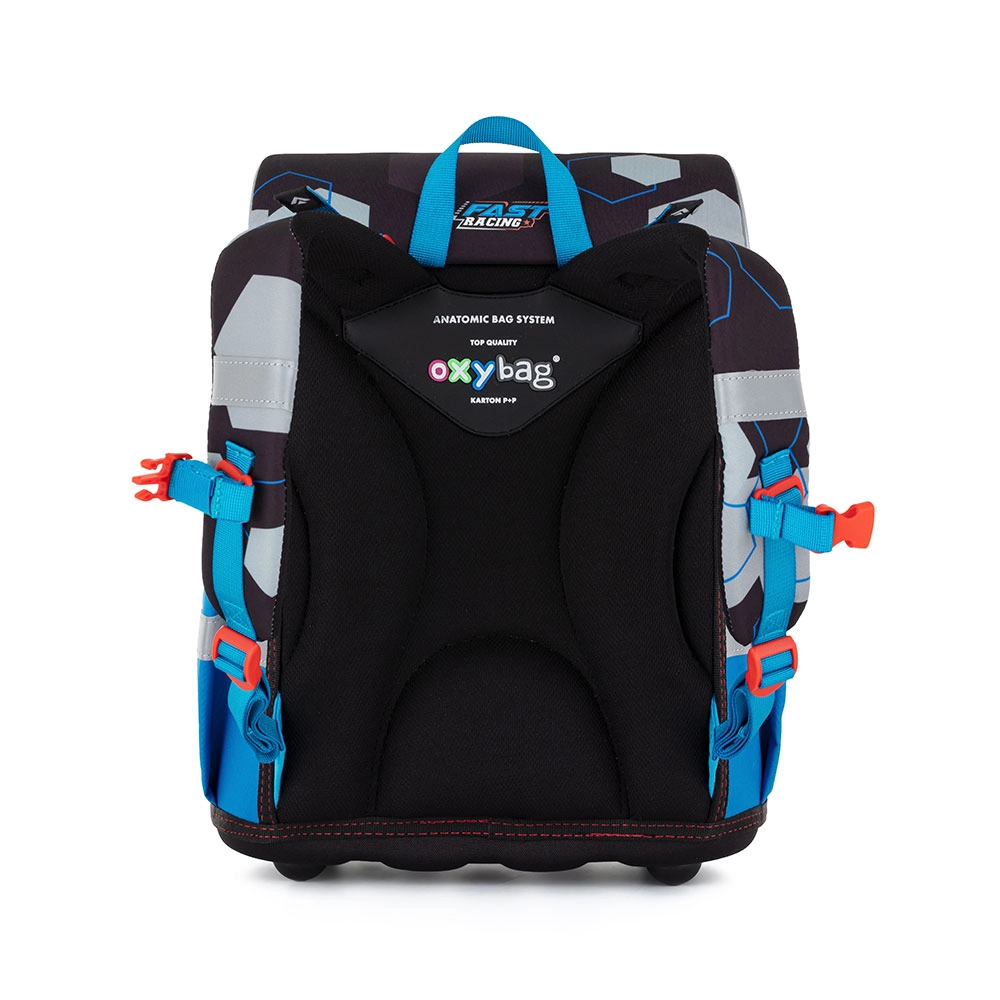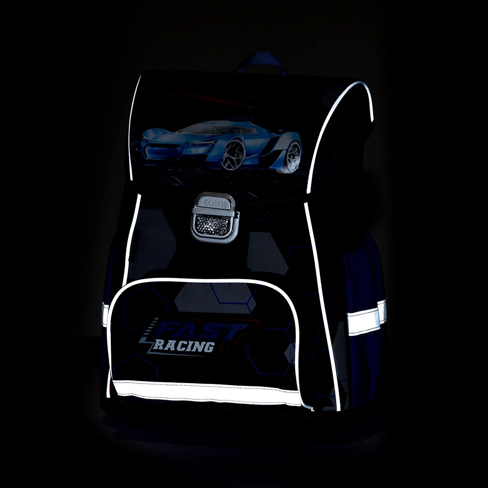 Premium skolas soma ar ātrā auto motīvu ir izstrādāta jaunākajiem skolēniem, kuriem nepieciešams uzticams palīgs skolai. Pateicoties anatomiski veidotai un pastiprinātai muguras daļai, tā lieliski pieguļ mugurai un saglabā stabilu formu visu skolas dienu. Patīkams elpojošs polsterējums un platās mīkstinātās lences vienmērīgi sadala slodzi un paaugstina nēsāšanas komfortu.