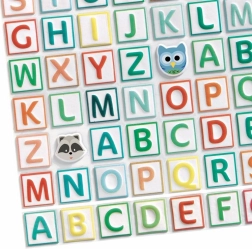 Iepakojumā atradīsiet 2 loksnes ar kopā 300 gabaliem burtu, tāpēc fantāzijai ir plašas iespējas – no personīgiem uzrakstiem uz kladēm līdz rotaļīgai burtu apguvei un pirmo vārdu veidošanai.
