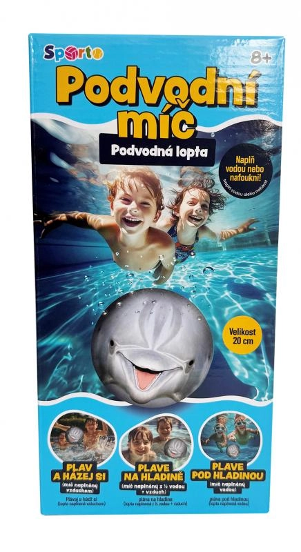 Zemūdens bumba SPORTO – delfīns ir lieliska izvēle baseinam, ezeram un dārzam. Pateicoties gudrai konstrukcijai, to var piepildīt ar ūdeni, lai tā grimtu uz grunts un būtu ideāla niršanas un peldēšanas prasmju treniņiem, vai arī vienkārši piepūst ar gaisu, lai tā peldētu un būtu gatava mešanai un ūdens spēlēm.