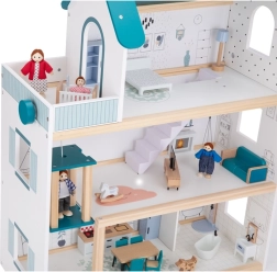 Mājiņa ir aprīkota ar vairākām telpām un funkcionējošu liftu, kas bērniem nodrošina reālistisku un bagātinošu pieredzi.