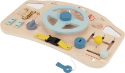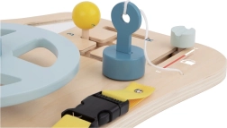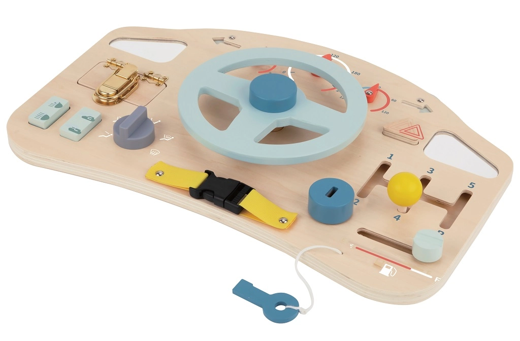 Tāfele palīdz bērniem uzlabot smalkās motoriskās prasmes, izmantojot interaktīvus elementus, piemēram, stūri, sviras un pogas.