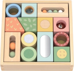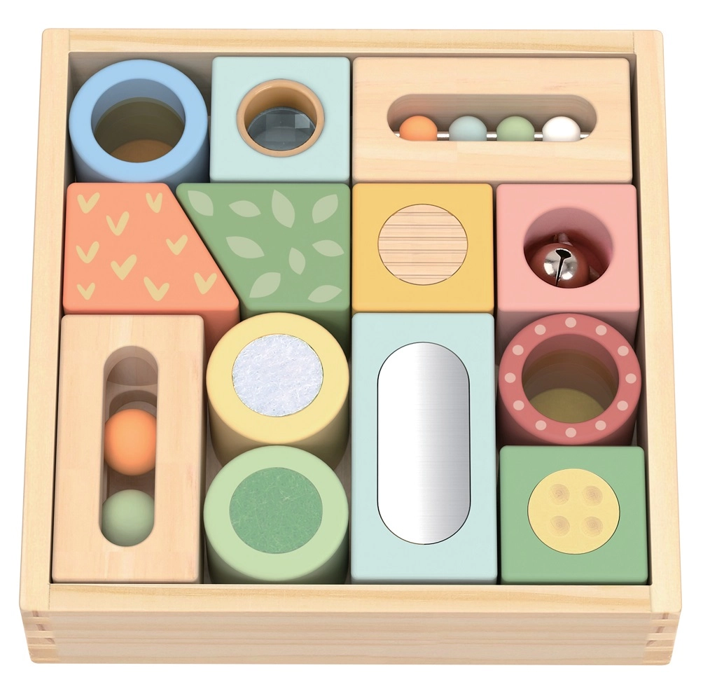 Atklājiet šo sensoru kubu burvību, kas izstrādāti, lai attīstītu bērnu zinātkāri un iztēli. Katrs kubs ir izgatavots no kvalitatīvas FSC® sertificētas koksnes, kas nodrošina produkta vides atbildību. Pateicoties dažādiem materiāliem un faktūrām, bērni iemācās atpazīt un atšķirt vairākus elementus savā vidē.