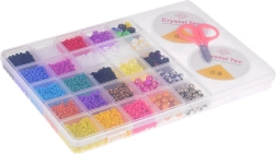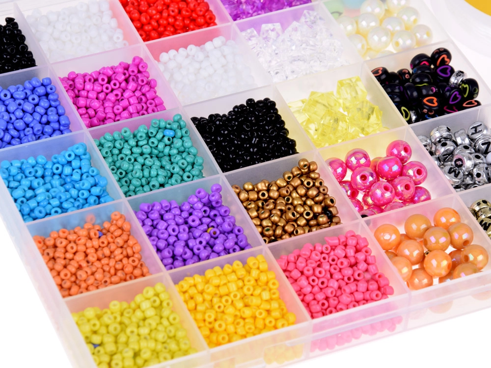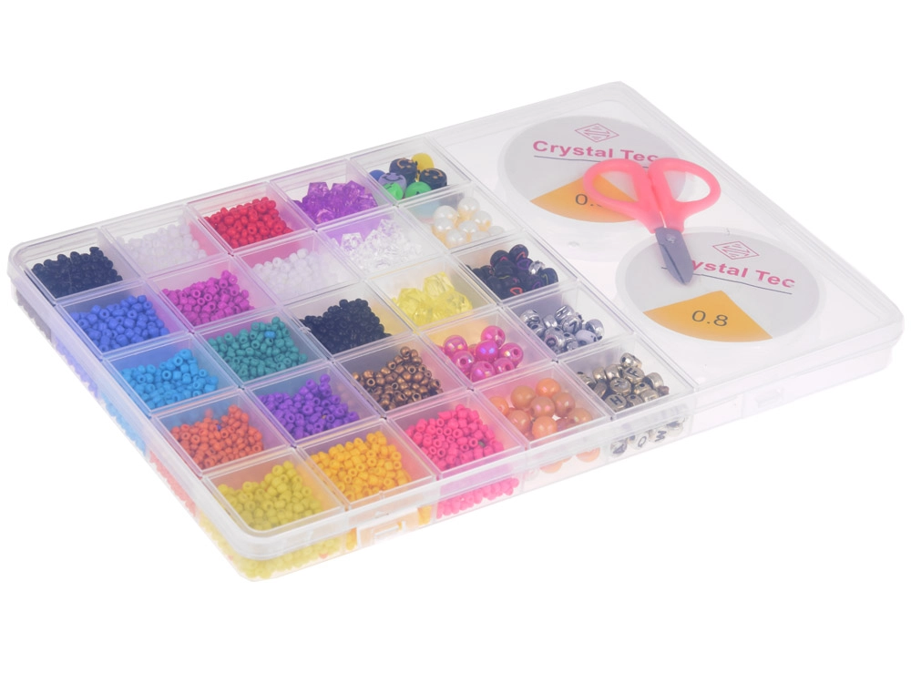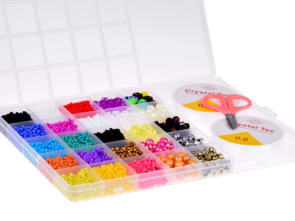 Šis bagātīgi aprīkotais komplekts ir ideāls rokassprādžu, kaklarotu, piekariņu un citu aksesuāru izgatavošanai. Pateicoties plašajai zilās, tirkīza, violetās, rozā, zaļās un baltās toņu gammai un dažādajām krellīšu formām, jūs izveidosiet oriģinālus aksesuārus jebkurai situācijai. Organizators ar nodalījumiem uztur visu pārskatāmu – krelles nesajaucas un darbs ir ātrs un ērts.