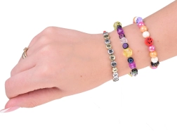 Plaša toņu un formu palete, tostarp burtu krellītes, ļauj veidot unikālas rokassprādzes, kaklarotas un piekariņus tieši pēc jūsu ieceres.