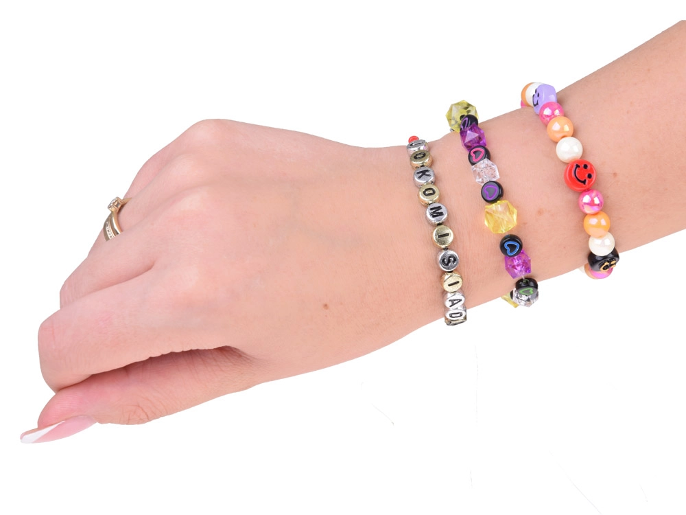 Iepakojumā atradīsiet visu, kas nepieciešams tūlītējai darināšanai: 2 spoles caurspīdīgas elastīgas aukliņas ērtai vēršanai un šķēres precīzai apgriešanai. Burtu krellītes ļauj veidot vārdus, uzrakstus un ziņas, padarot katru rotu unikālu.