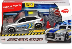 Policijas auto Audi RS3 ar inerces piedziņu sniedz aizraušanos ar gaismas un skaņas efektiem. Atveramās durvis palielina šīs rotaļlietas reālismu.