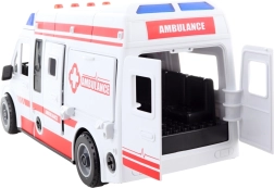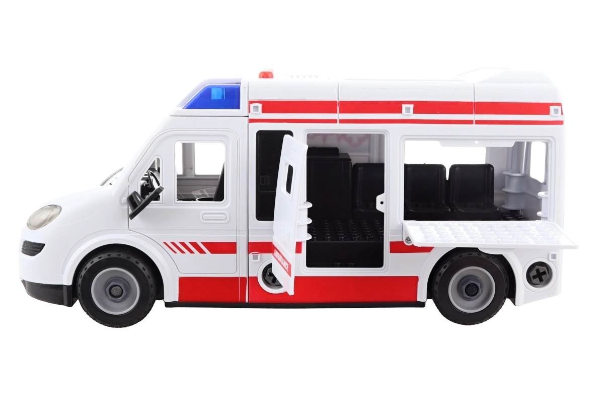 Modeli darbina 3× AG13 (iekļautas komplektā), un tas piedāvā četrus skaņas režīmus – sirēnu, taurēšanu, iedarbināšanu un melodiju. Atveramās durvis vadītāja pusē un aizmugurē atvieglo “pacientu” iekraušanu nestuvēs un piekļuvi kabīnei.