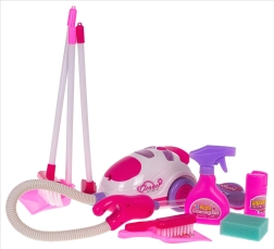 Ar 3× AA baterijām darbināms putekļsūcējs izdod reālistiskas skaņas, iedegas un uzsūc sīkus netīrumus, lai rotaļa līdzinātos īstai uzkopšanai.