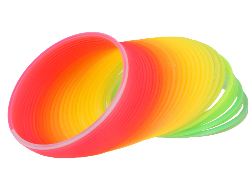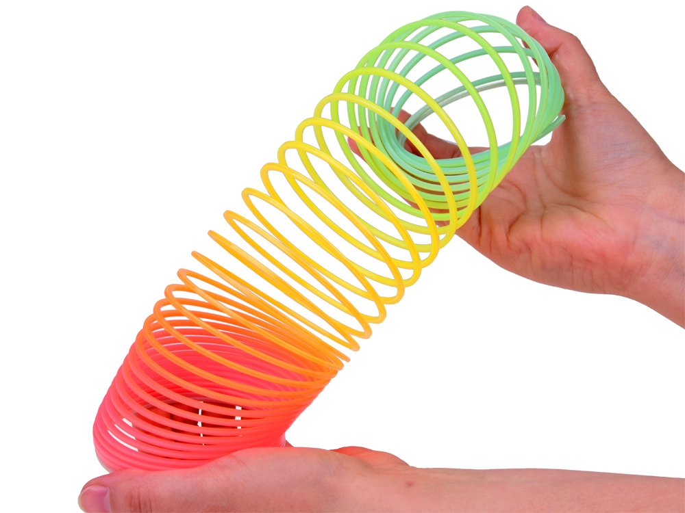 Varavīksnes atsperīte ir mūžīga klasika, kas iepriecina gan bērnus, gan pieaugušos. Tā izgatavota no izturīgas plastmasas, un tās krāsu pāreja piesaista uzmanību jau pirmajā mirklī. Elastīgā spirāle viegli izplešas un atgriežas sākotnējā formā, kas attīsta sīko motoriku un sniedz relaksējošu antistresa efektu.