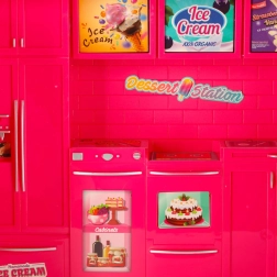 Šis lieliskais spēļu komplekts apvieno mobilā food truck burvību, kas pasniedz dabas saldējumu, un plašu kemperi ar pietiekami daudz vietas spēlei un atpūtai. Bērni var viegli pāriet no radoša saldējuma pārdevēja lomas uz ceļojoša gida ar kemperi, nodrošinot daudzfunkcionālu spēli un bezgalīgu izklaidi.