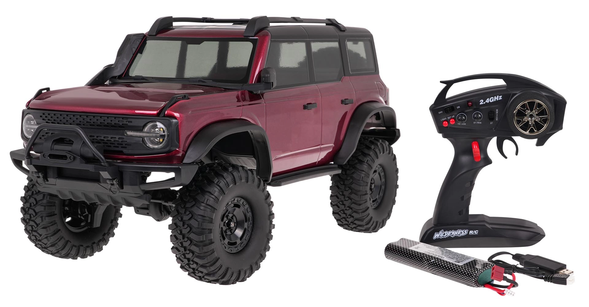 RC kāpējs WILDERNESS mērogā 1:10 apvieno robustu konstrukciju ar detalizētu virsbūves izstrādi. Neatkarīga katra riteņa piekare, metāla sviru stieņi un priekšējais un aizmugurējais diferenciālis nodrošina izcilu saķeri nelīdzenā reljefā. Lielas gumijas riepas ar dziļu protektoru un īpaši liels stūrēšanas leņķis ļauj tikt galā ar akmeņiem, saknēm un apmalēm.