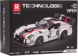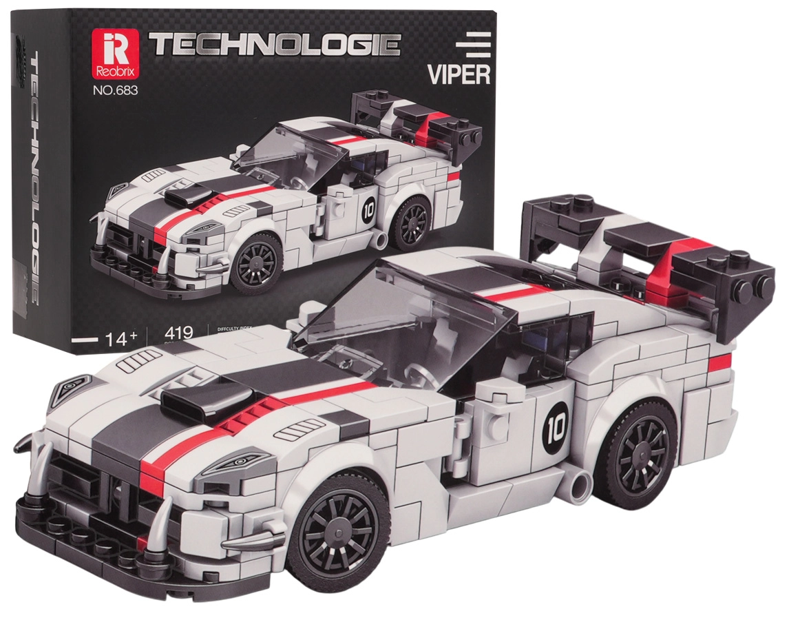 Šis radošais komplekts piedāvā uzticami izstrādātu baltu sporta auto, iedvesmotu no Viper dizaina. Salikšanu ar grūtības pakāpi 2/5 viegli paveiks gan prasmīgi iesācēji, gan tehnisko modeļu entuziasti. Pateicoties manuāli atveramām durvīm un iespējai izrotāt modeli ar iekļautajām uzlīmēm, iegūsiet iespaidīgu izstādes eksponātu.
