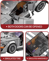 Modelis piedāvā manuāli atveramas durvis, uzticamas īsta sporta auto proporcijas un iespēju personalizēt izskatu ar uzlīmēm. Iepakojumā iekļauta attēlu instrukcija, kas nodrošina pārskatāmu, soli pa solim izpildāmu salikšanu.
