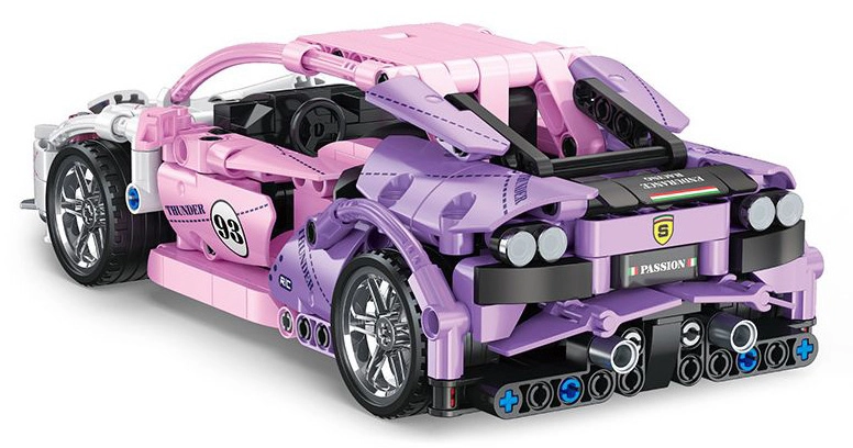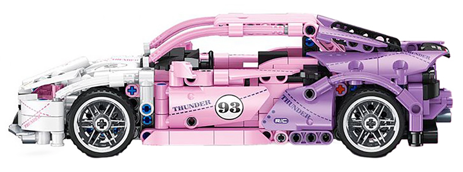Salieciet savu rozā sporta auto no 652 būvdetaļām ar atveramām durvīm un stilīgām uzlīmēm. Ideāli bērniem no 6 gadu vecuma, attīsta sīko motoriku, telpisko iztēli un pacietību. Iekļauts attēlu pamācības buklets vienkāršai salikšanai.