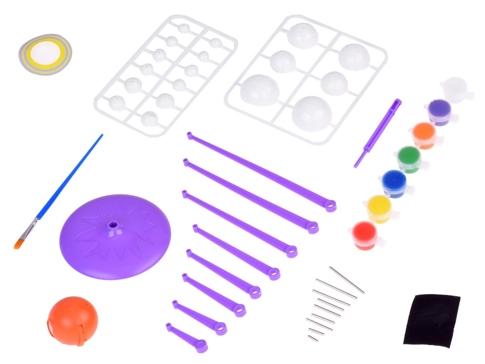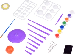 Pēc planētu salikšanas bērni var patstāvīgi tās apgleznot, izmantojot iekļautās krāsas un otu, attīstot savu radošumu un iztēli.