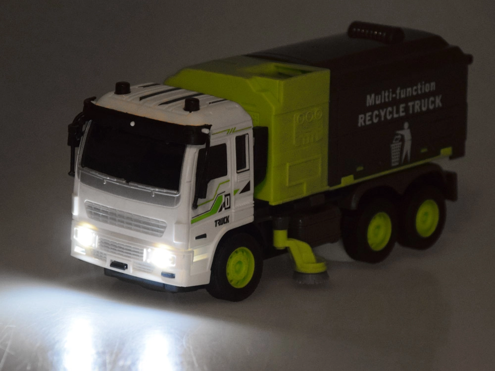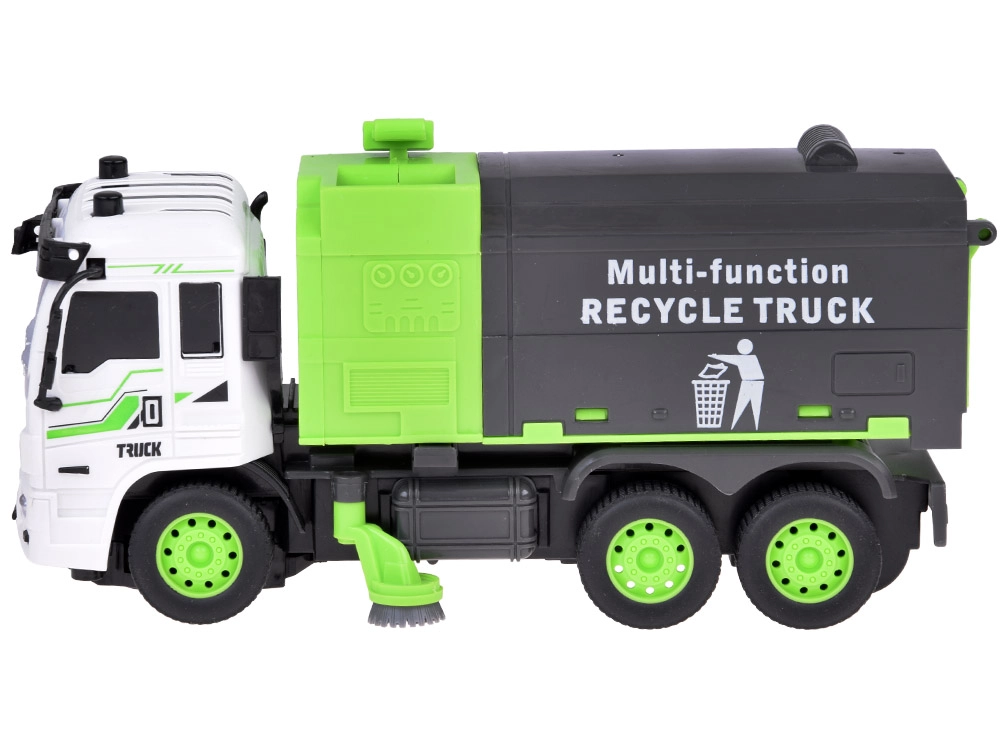 RC atkritumu savācējs uzticami atdarina īstu pārstrādes kravas auto un māca bērniem atkritumu šķirošanas principus. Pateicoties tālvadības pultij, to ir viegli vadīt uz priekšu/atpakaļ un pa labi/pa kreisi, kamēr gaismas efekti un demo režīms pastiprina spēles pieredzi.