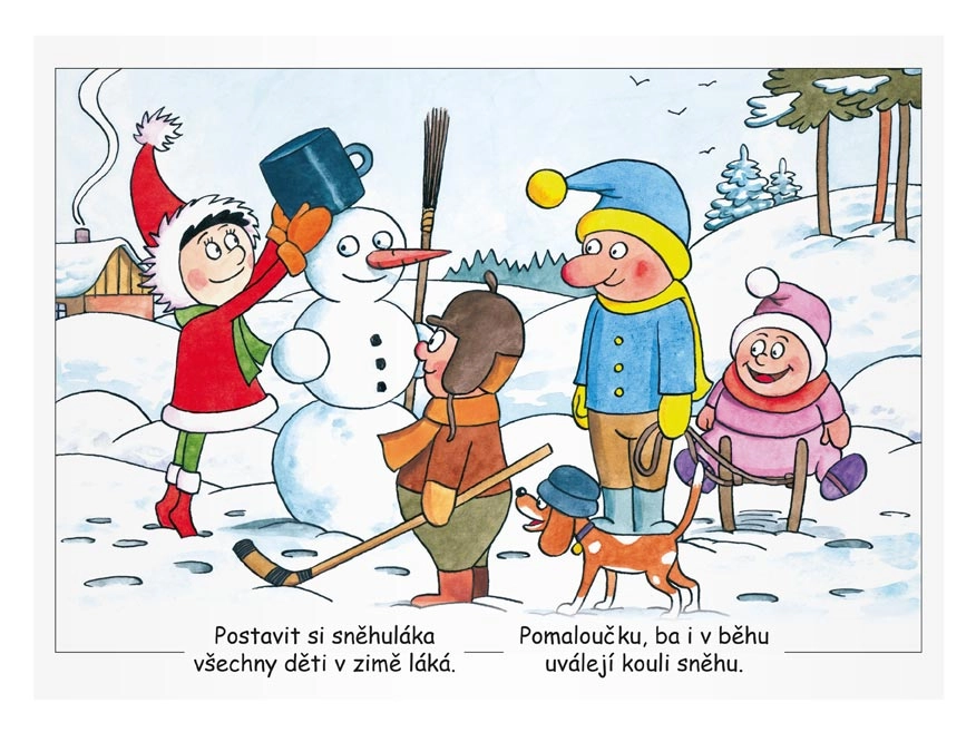 Krāsojamā grāmata piedāvā iemīļotas ziemas nodarbes, piemēram, kolēdu dziedāšanu, sniegavīra veidošanu un braukšanu ar ragaviņām. Lieliski der mājas radošajām aktivitātēm, bērnudārziem un pagarinātajām grupām. Labākam rezultātam iesakām izmantot kvalitatīvas krāsainās zīmuļus.