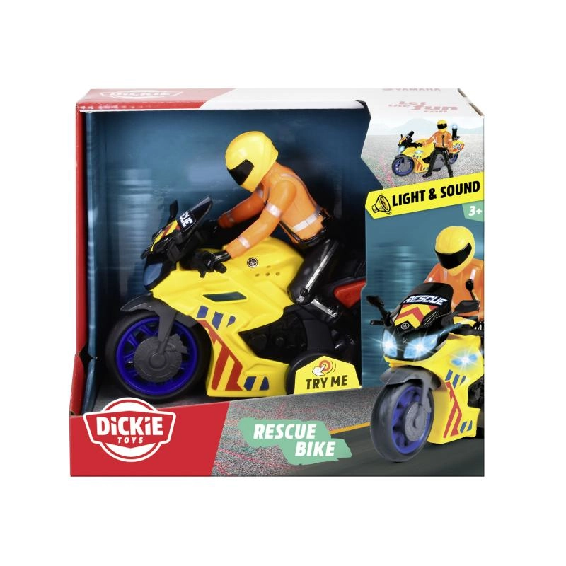 Izbaudiet dinamiskas glābšanas misijas ar šo glābšanas motociklu 17 cm garumā, kas aprīkots ar gaismu, skaņu un pārvietojamu vadītāja figūriņu.