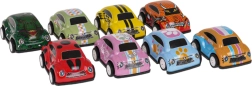 Mašīnītes pietiek viegli pavilkt atpakaļ, un tās pašas trauksies uz priekšu. Vienkāršais mehānisms nodrošina daudz darbības bez baterijām.