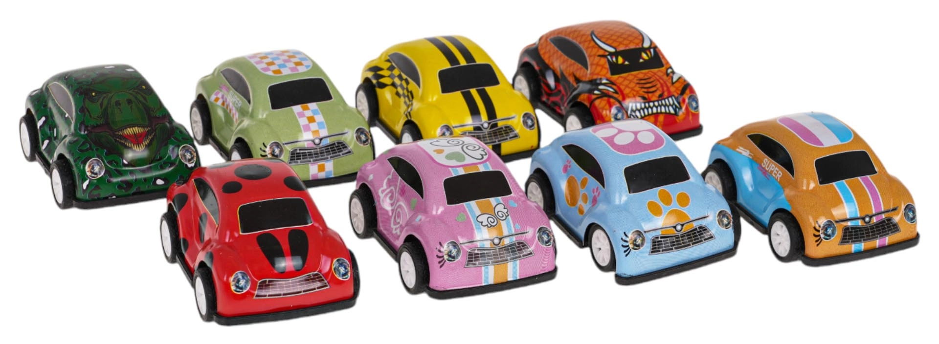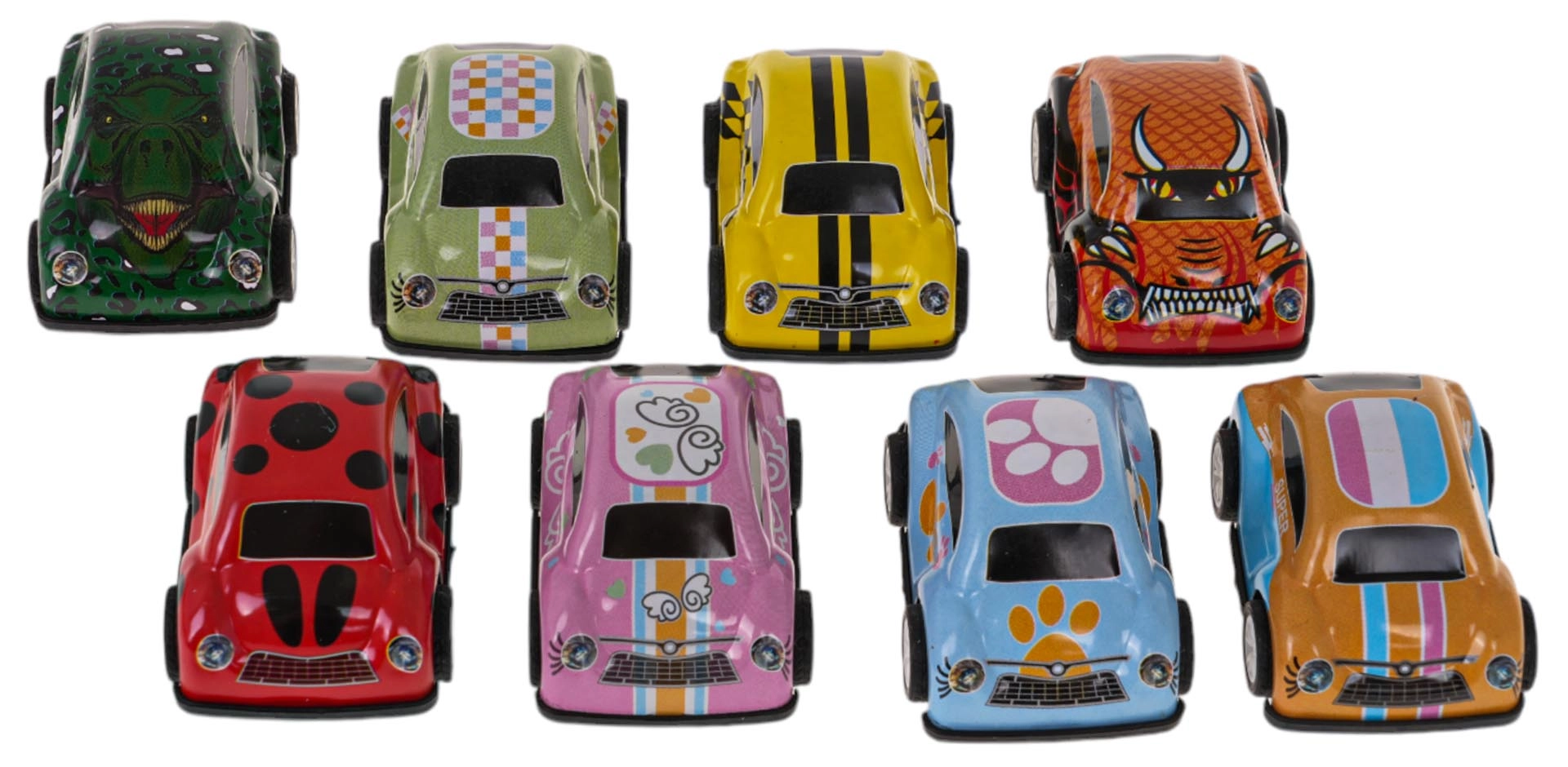 - Daudzkrāsains komplekts ar 8 mašīnītēm daudzveidīgai spēlei un kolekcionēšanai